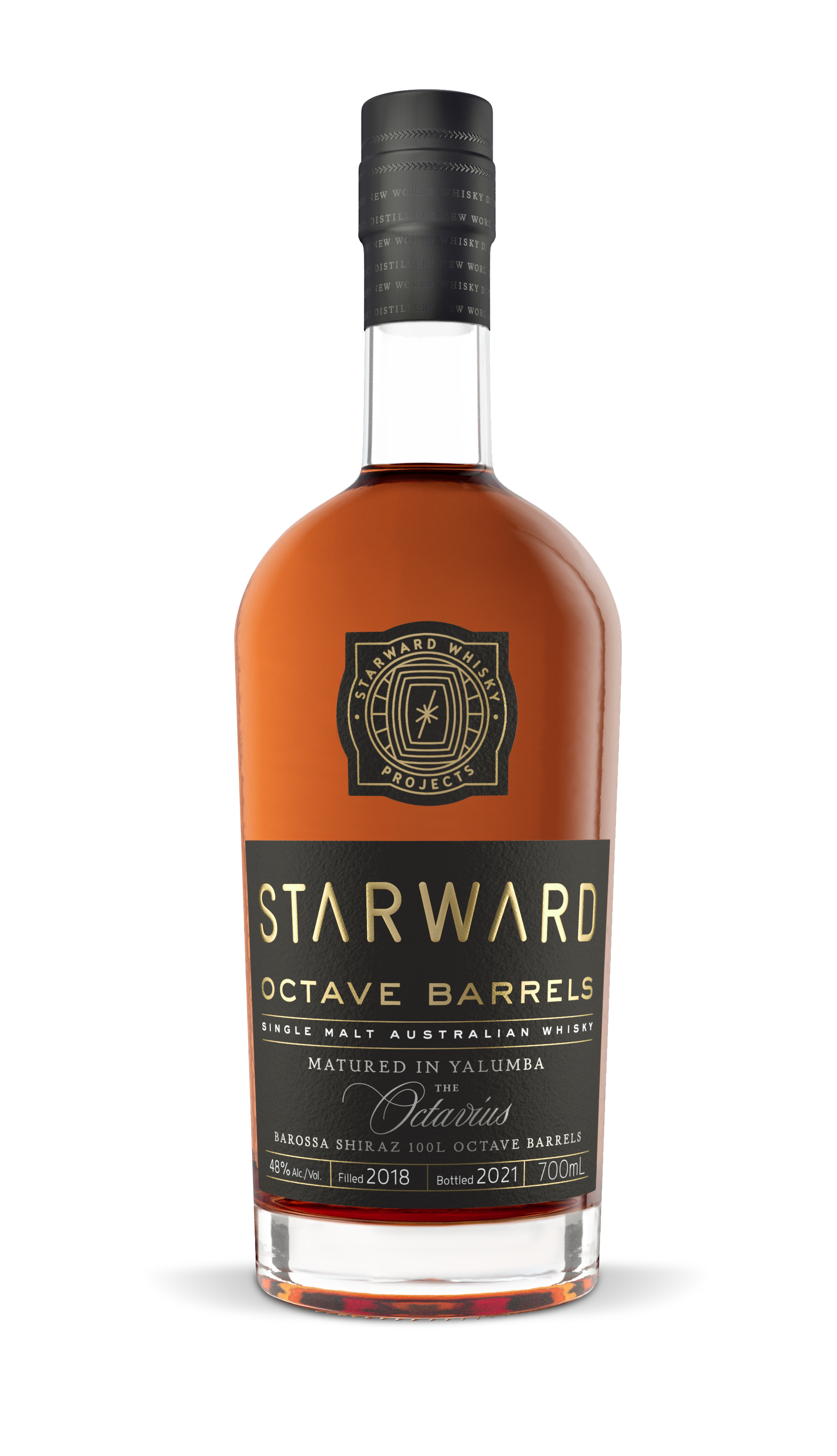 Description Starward Octave Barrels is a single malt Australian whisky which has been fully matured in 100L wine barrels called “Octaves”. The Octave wine barrels, that inspired the name for this release, were sourced from Yalumba – a family-owned Australian winery, located in the heart of Australian’s famed Barossa wine region, and were used to produce their iconic Octavius Old Vine Shiraz. Aroma : Rich, full bodied expression. Lots of red fruit, raisins, ripe peach, caramel and toasty oak. Palate : Viscous and long, dark forest fruits, and a toasted oak backbone. Finish : Toasted marshmallow.