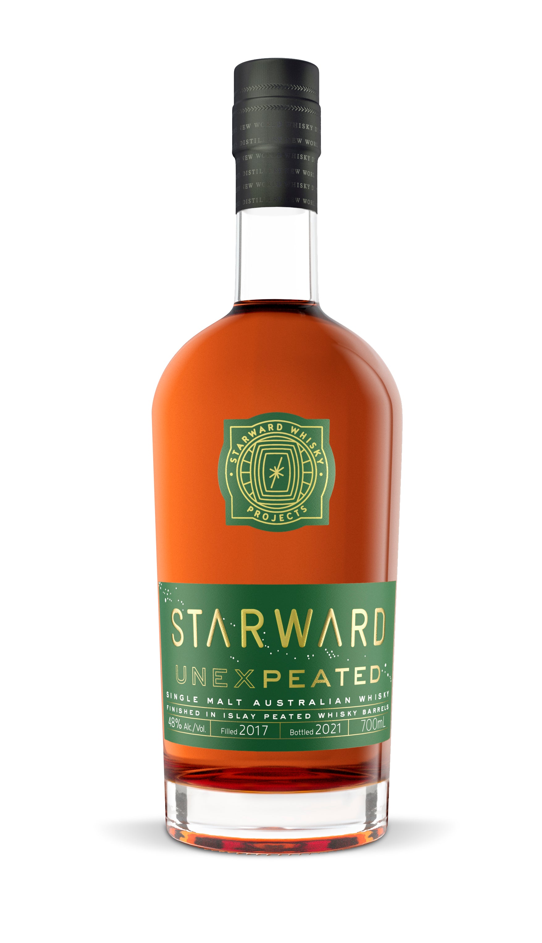 Description Starward Whisky has fused the new world Australian way with old world Scottish expertise to craft UNEXPEATED, a new red wine barrel aged Australian single malt whisky, finished in peated whisky-drenched barrels from the finest distilleries in Islay, Scotland. For the first time, whisky drinkers will taste coastal, peaty, smoky flavour in Starward’s signature fruit-forward whisky. Now that’s UNEXPEATED! Our juicy, tropical Starward flavours have taken on peat smoke character, in this latest release. On your tongue, subtle sweet peat melds with red-wine-barrel red berries and sticky golden peaches. You’ll discover coastal peat in the aroma and a lingering smouldering dry finish too. Nose : Tropical fruits, toasted oak and a hint of sweet peat. Palate : Ripe red berries, coastal peat smoke, yellow peaches and cocoa nibs. Finish : Oak slowly dries the palate, with a long peated finish after.
